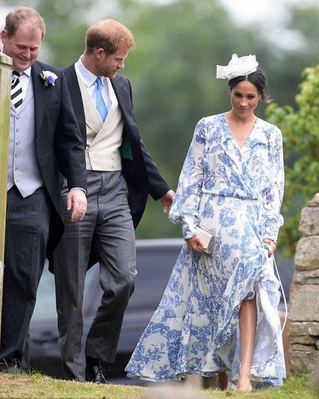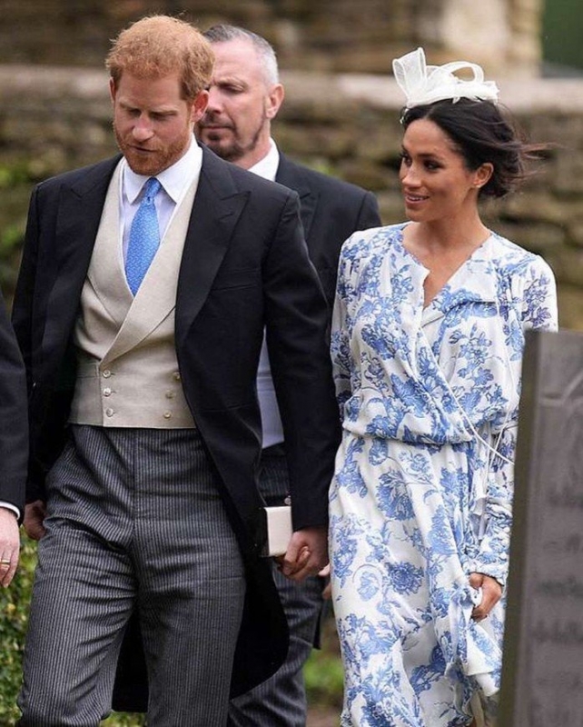 Со свадьбы принца Гарри и Меган Маркл прошло всего несколько недель, потому к этой паре все еще привлечено повышенное внимание публики. Каждый новый выход Меган, теперь уже в статусе герцогини Сассекской, обсуждается в мельчайших деталях поклонниками бывшей актрисы во всем мире. Новые снимки облетели накануне мир - принц Гарри и Меган Маркл посетили свадьбу племянницы принцессы Дианы Селии Маккоркодейл. Множество фотографий заполнило интернет, поэтому у пользователей социальных сетей вновь появилась возможность в малейших деталях рассмотреть туалет и прическу новоиспеченной герцогини. И, надо сказать, в этот раз образ Меган совсем не доставил публике удовольствия.Если буквально неделю назад поклонники восхищались манерами и элегантным нарядом Маркл во время торжества, посвященного празднованию дня рождения королевы Елизаветы II, то теперь они с сожалением отмечают, что от изысканности не осталось и следа, недоумевая, как Меган удалось совсем недавно блистатть на равных с непревзойденной Кейт Миддлтон. Платье, которое выбрала Меган для посещения свадебного торжества, было явно велико ей минимум на пару размеров, а принт и фасон совсем yy украсили молодую женщину. А нелепая шляпка и чересчур небрежная прическа совсем не подходят для посещения церемонии бракосочетания.