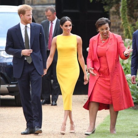 Знаменитая «Золушка» наших времен, американская актриса Меган Маркл вместе со своим супругом принцем Гарри встретилась с представителями стран Содружества. Для общения с молодыми лидерами герцогиня Сассекская выбрала эффектное желтое платье, в котором сразила всех как своим ярким видом, так и стройной фигурой, на которую обратили пристальный взор все без исключения.