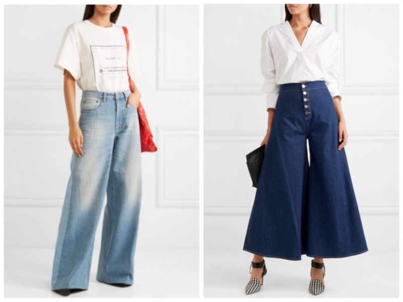 На пике моды – объемные модели: мешковатые палаццо, клеш от бедра, кюлоты, клеш от колена, мамас-джинс.