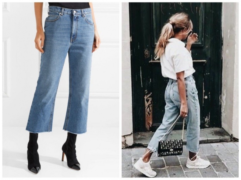 Длина модных в этом сезоне джинсов варьируется от 7/8 до очень длинных, стелящихся по полу палаццо. Подвороты все еще используются практически на всех моделях, так что смело подворачивайте, открывая щиколотки.