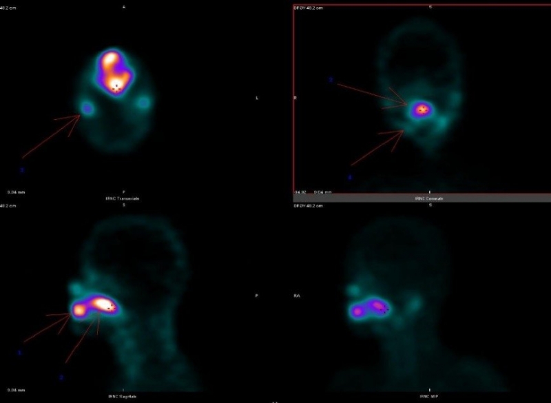 В лаборатории радиоизотопной диагностики МНКЦ специалисты обнаружили, что щитовидная железа у девушки расположена иначе - не так, как у подавляющего большинства людей. И именно аномальное расположение мешало эффективному лечению. Медики с огромным опытом за плечами сумели локализовать эти затерянные в поднижнечелюстной и подъязычной доли щитовидки. Пациентка прошла второй курс радиойодтерапии, который действительно можно назвать успешным. Диагноз, мучивший ее столько лет, наконец снят.