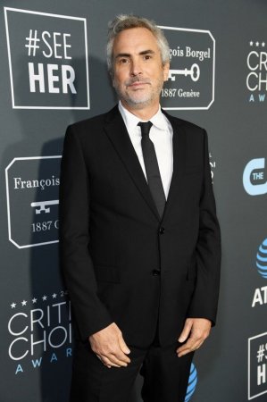 Альфонсо Куарон надел классический черный шерстяной костюм с лацканами прямоугольной формы и черный шелковый галстук.