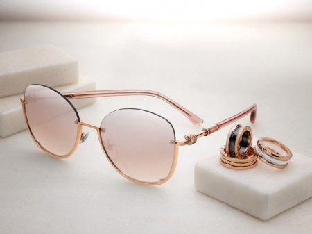 Еще ближе к ювелирному первоисточнику очки-бабочки в металлической полуоправе со спиральным декором, напоминающем о классической форме B.zero1. Прозрачные дужки еще больше подчеркивают современный и легкий характер этих очков.