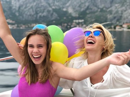 Мать и дочь отметили праздник в Черногории на яхте в открытом море. Там они и устроили веселую и яркую фотосессию с воздушными шарами. Не сумев выбрать из множества красочных снимков один, Аврора опубликовала сразу несколько кадров, подписав их:«Сладкие 15 лет»