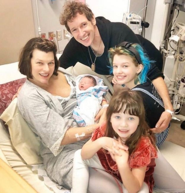 Милла Йовович О своей беременности актриса Милла Йовович сообщила в октябре прошлого года, тогда она призналась, что не хотела раскрывать новость, пока не пройдет самый опасный период. Причиной таких опасений стала потеря ребенка в 2017 году, поэтому Милла на время беременности отказалась от съемок и посещения светских мероприятий. Она признавалась, что сосредоточилась на будущем малыше, потеряла чувство стиля и совсем не хочет думать о карьере или общаться с прессой.Однако за десять дней до родов знаменитость все же отправилась к стилисту, чтобы обновить прическу: Милла хотела, чтобы малышка впервые увидела маму красивой. Милла Йовович с семьей и новорожденной дочкой Роды случились точно в дату, обозначенную врачом актрисы: в ночь на третье февраля Милла Йовович родила третью дочь. В отличие от многих знаменитостей, она не стала скрывать имя и лицо ребенка.Первым снимком с малышкой поделилась в микроблоге ее старшая сестра Эва Габо: на фото запечатлена вся семья в больничной палате. Сама Милла лежит на кушетке с малышкой на руках, а две старшие дочери и супруг сидят рядом. Эва рассказала, что новорожденную девочку назвали Оушен, а ее мама чувствует себя отлично и совсем скоро вернется домой. Поклонники поздравили артистку, пожелав ей и малышке Оушен крепкого здоровья. Многие признались, что теперь с нетерпением ждут возвращения Миллы на киноэкраны в новых проектах. Беременная Милла Йовович