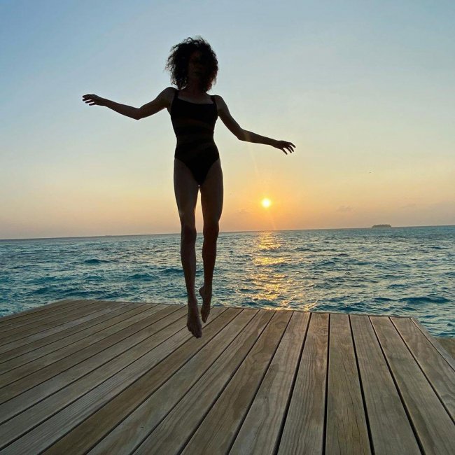 Звезда опубликовала снимок, которым можно любоваться с утра до вечера. Актриса изображена на деревянно палубе на фоне морского заката. Что удивительного? Ничего, если бы не удивительный полет, в котором застыла прекрасная, изящная и такая хрупкая фигура Ксении. С первого взгляда даже сложно понять, есть ли на звезде одежда, однако успокоим требовательную публику — слитный купальный костюм на положенном месте. Фанаты восхищены стройным силуэтом актрисы — кажется, она весит не больше пушинки, а ее ноги не имеют конца и начала. Все еще думает, что в 40+ невозможно быть стройными?