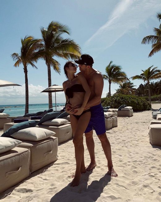 На фото Анастасия запечатлена на пляже в объятиях супруга. Она облачена в черный купальник, подчеркивающий ее изменившуюся фигуру. В хэштегах знаменитость указала, что снимок сделан на пляже Канкуна, где супруги недавно отдыхали.