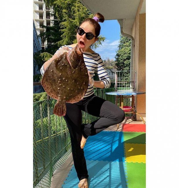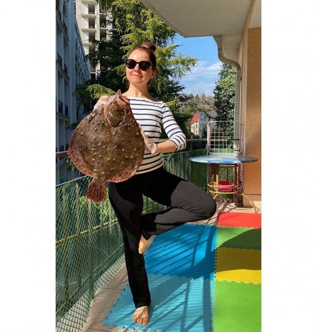 А вот звезда любимого сериала «СашаТаня» Валентина Рубцова неукоснительно придерживается рекомендаций специалистов. Актриса находится с семьей в Сочи и призывает всех поклонников тоже находится дома. На днях она показала забавное фото, как занимается на балконе йогой. Кажется, ничего удивительного, однако в руках Валентина держит огромного размера камбалу!