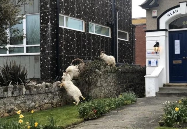 Опустевший из-за режима самоизоляции город в Уэльсе начали посещать неожиданные гости: стада горных козлов, до этого боящихся спускаться к поселениям людей, чувствуют себя полноправными хозяевами. Животные бродят по улицам, с аппетитом жуют живые изгороди, залезают на крыши домов и даже заходят в открытые двери.