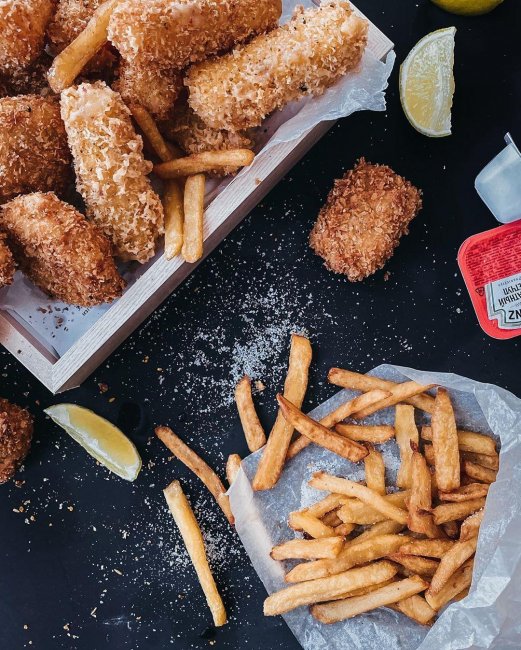 Картофель фри и наггетсы. Автор фото и рецепта: instagram.com/moms_week/ Ингредиенты: Картофель 500 г;Куриное филе 1 шт;Сыр твердых сортов 400 г;Яйцо куриное 4-6 шт;Панировочные сухари;Специи по вкусу;СольСахарМука Картофель фри и наггетсы. Автор фото и рецепта: instagram.com/moms_week/ Способ приготовления: 1. Нарезаем картофель длинными брусками и заливаем 2 стаканами воды, в которых также смешаем 2 ст. л. соли и 2 ст. л. сахара. Оставляем на 30 минут. После сливаем воду и даем картошке полностью высохнуть.?2. Панировочные сухари смешиваем со специями, приправами.?3. Сыр нарезаем брусками и панируем: сначала в муке, стряхивая лишнюю, далее яйцо, панировочные сухари, яйцо, панировочные сухари. Кладем палочки на тарелку и убираем в холодильник минут на 30.?4. Отбиваем, перемалываем куриное филе, солим. Катаем любые формы. Панируем так же, как сыр Отправляем в холодильник на 30 минут.?5. Разогреваем масло до 180 градусов.?6. Жарим. Сначала картофель, потом наггетсы, потом сыр. Картофель сверху посыпаем солью. Приятного аппетита!