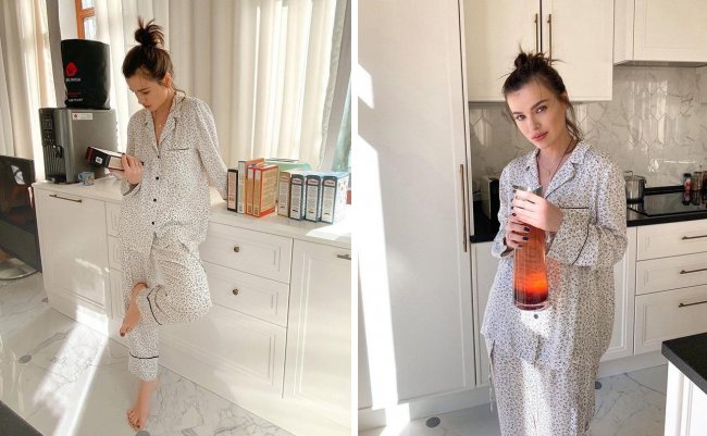 Как показала практика ограничительных мер, артистка предпочитает домашнюю одежду свободного кроя. А, точнее, мужские пижамы, которые ввела в моду легендарная Коко Шанель. Клетчатый ансамбль, светлый комплект или полосатый, Темникова в любой из своих пижам выглядит сногсшибательно. Что примечательно, про макияж артистка не забывает, даже находясь дома 24 часа в сутки.