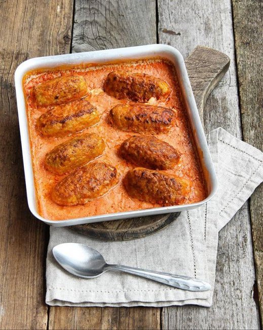 Автор фото и рецепта Марина Баранова: instagram.com/marina._.baranova/ Ингредиенты: • фарш мясной 400 гр• рис 150 гр• нашинкованная капуста 200 гр• яйцо 1 шт• сметана 100 гр• томатная паста 3-4 ст.л. • мука 1 ст.л. • вода 1 литр• соль• черный молотый перец Процесс приготовления: 1. Рис залить кипятком и оставить на 15-20 минут. Затем воду слить. 2. Капусту мелко нашинковать.3. Перемешать фарш, рис, капусту и яйцо. Посолить и поперчить по вкусу. Сформировать ленивые голубцы. Обжарить их на разогретой с маслом сковородке со всех сторон и сложить в форму для запекания. 4. Смешать сметану с томатной пастой и мукой, развести водой. Посолить по вкусу и вылить к голубцам. 5. Запекать в прогретой до 185С духовке минут 30. Выключить духовку и дать еще минут 10 постоять.