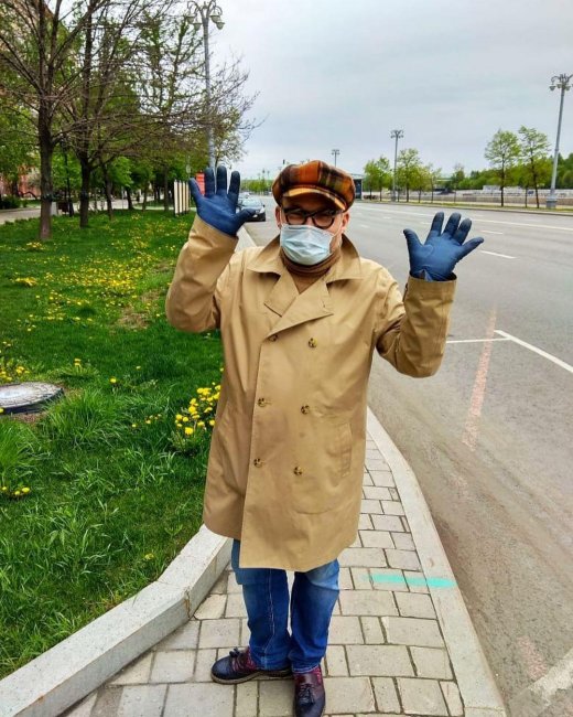 «Изменился и наш внешний облик. Мы все носим маски и перчатки. Это жизненно необходимо. Резиновые перчатки, как я заметил, в большинстве своем голубого и синего цветов. Это продиктует определенный тренд для многих кокетливых, модных женщин, которые выходят в город за покупкой продуктов или выгуливать своих домашних питомцев. Они уже сразу будут искать аксессуары синего цвета: платочек или шарфик на шею, головной убор. Дабы избежать какофонии в цвете.?А сколько оригинальных масок мы уже увидели: и с цветочками, и с аппликациями, и со стразами, как у Филиппа Киркорова. Русский народ талантлив в выдумке, особенно если ему задать верное направление. И под хохлому маски разрисуют, и под гжель, вот увидите.?Я очень обрадован тем, что люди стали намного добрее по отношению друг к другу за время пандемии. Мне не раз звонили во время карантина ученицы моей выездной школы, привозили продукты, оставляли под дверью корзинки с продуктами: со свежими яйцами с рынка, творог, мед, фрукты, овощи, орехи. Это очень приятно. Даже привезли как-то горячий плов! Спасибо всем, кто проявлял заботу обо мне!»