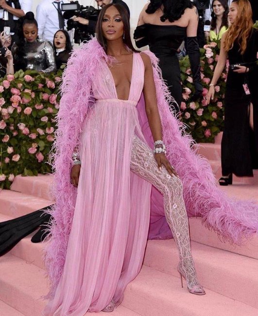 Начиная с 1991 года Кэмпбелл регулярно входит в число самых красивых женщин планеты. А сегодня, в честь своего юбилея, черная пантера поделилась провокационным снимком в стиле ню, который лишь укрепил уверенность ее поклонников по всему миру в том, что ей нет равных.В кадре Наоми позирует, сидя на полу студии. На знаменитости нет одежды, но пренебрегать обувью стилисты не стали. Черные босоножки с ярко-розовыми перьями и подобранный им в цвет розовый парик с длинными локонами, прикрывающими обнаженную грудь, — вот и все, что было на богине модных подмостков.