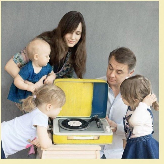 Актер на снимке запечатлен у музыкального проигрывателя в форме желтого чемодана с супругой, 5-летней Софией-Каролиной, 3-летней Марией и малышкой Евой, которая родилась в январе прошлого года. Этот кадр был приурочен к выходу новой главы сказки «Приключения желтого чемоданчика», которую Игорь читает для поклонников во время самоизоляции.