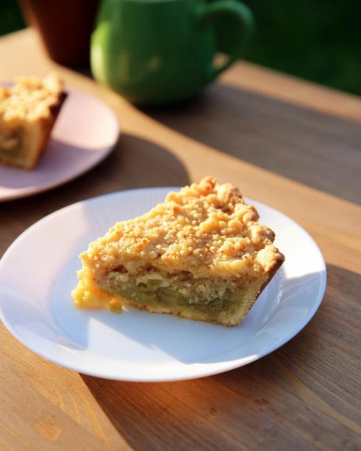 Автор фото и рецепта Мария: instagram.com/greenwitch_cookbook/ Ингредиенты:Тесто: • Мука 200 гр• Сливочное масло 120 гр• Сахар 50 гр• Яица 1 шт• Соль 1/4 ч/л Начинка: • Ревень стебли 350 гр • Коричневыи сахар 100 гр• Сок 1 апельсина Крошка: • Мука 140 гр• Масло сливочное 100 гр• Миндаль молотыи (или фундук, или миндаль с фундуком 50/50) 100 гр• Сахар 150 гр Процесс приготовления:1. Духовку разогреть до 200С. Смешать все ингредиенты теста. Выложить его в форму, выпекать 5-7 минут, затем снизить температуру до 180С, и выпекать еще примерно 15 минут.2. Смешать все ингредиенты начинки и потушить ее до мягкости ревеня. Выложить начинку. Если слишком много сока, то слить его и потом подавать в виде соуса с готовым пирогом.3. Смешать все ингредиенты крошки, растереть так, чтобы не было крупных кусочков. Выложить поверх ревеня. Выпекать еще 20 минут.