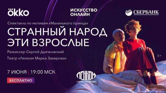 7 июня в 19.00 смотрите онлайн-трансляцию спектакля «Странный народ эти взрослые» театра «Ленком Марка Захарова». «Странный народ эти взрослые» — сценическая фантазия по мотивам повести Антуана де Сент-Экзюпери «Маленький принц» в постановке режиссера Сергея Дьячковского. «Маленький принц» Антуана де Сент-Экзюпери, бесспорно, произведение вне времени и пространства. А главное — оно близко аудитории совершенно разного возраста. Как и книгу, этот спектакль можно пересматривать множество раз, каждый раз находя что-то новое. Взрослые смогут заново ощутить себя детьми, а дети смогут ощутить себя мудрее всех нас, какими они на самом деле и являются.В главных ролях: Евгений Герасимов, Алексей Поляков и Татьяна Збруева.