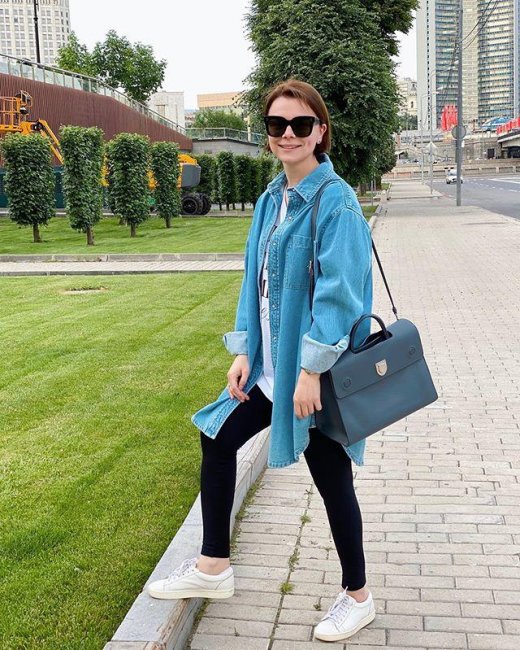 После отмены карантина Татьяна, так же как и многие, решила провести вечер на открытой веранде, о чем сразу сообщила в социальных сетях, опубликовав снимок в молодежном образе, соответствующем ее возрасту. Брухунова красовалась перед камерой в черных облегающих лосинах, белых кедах, удлиненной футболке, а также в джинсовой рубашке оверсайз.
