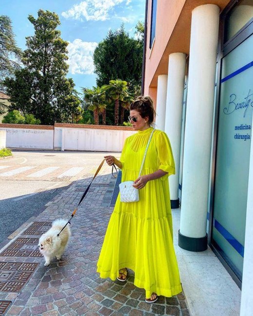 На днях она показала удивительный летний образ — звезда облачилась в длинное пышное платье сочного желтого цвета, дополнив его небольшой белой сумочкой и шлепанцами. Наряд произвел на фанатов настоящий фурор, хотя все наряды собирают небывалый отклик у публики.Платье, действительно, — мечта любой барышни, удачный крой скроет любые недостатки и объемы (хотя Бадоевой это вовсе не нужно), а цвет освежит образ и добавит энергии.