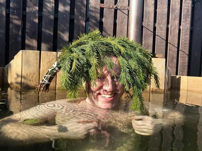 «Вы меня часто спрашиваете про отдых. Очень я люблю баню. В редкий выходной (съемочный процесс в разгаре), сижу в чане, после парной. Расслабляюсь. Тишина. Умиротворение. Но нет!!! Нет!!! Мне покоя. Снова он», — забавно подписал фотографии Сергей, имея в виду Александра Петрова.