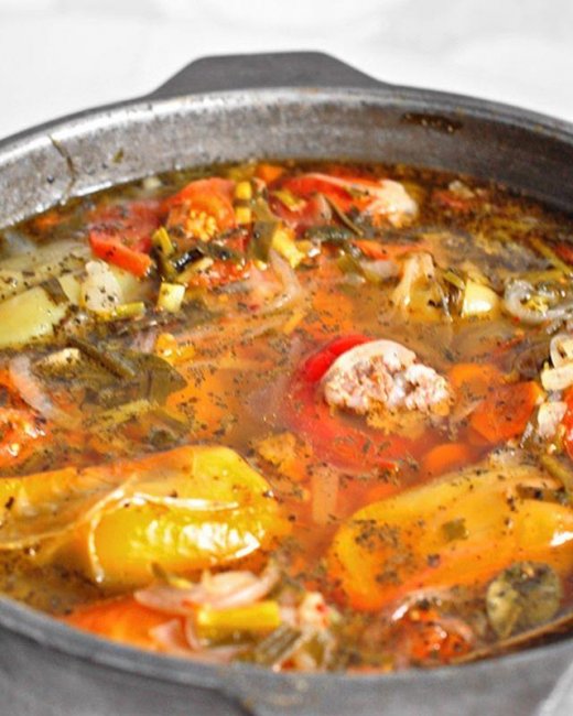 Автор фото и рецепта Венера Осепчук: instagram.com/venera_os/ Ингредиенты:Для перцев: Перец болгарский грунтовой (средний) 22-23 штФарш говяжий (с жирком) 1 кгЛук репчатый 3 штРис отварной до полу-готовности 1 стаканСоль, перец черный молотый по вкусу Для бульона: Картофель (крупный) 1 штЛук репчатый (крупный) 1 штМорковь средняя 2 штПомидор средний 2 штЧеснок 1 головкаЛук зеленый 1 маленький пучокПетрушка свежая 1 маленький пучокСоль, перец черный молотый по вкусуПерец красный сухой хлопьями по вкусуЛавровый лист 2 штБазилик сушеный 1 ст.л. Процесс приготовления: 1. Почистить от семян болгарский перец — вдавить плодоножку во внутрь (нажимая на центр), вытянуть ее к верху вместе с семенной коробочкой. Если внутри остались семена и перегородки, вычистить все пальцами. Перец промыть под проточной водой внутри и снаружи.2. К фаршу добавить мелко нарезанный репчатый лук, рис, соль, черный перец. Равномерно все перемешать. 3. Перцы заполнить мясным фаршем, сложить их в казан или в кастрюлю, которую потом можно будет поставить в духовку. Поверх перца нарезать помидоры и лук полукольцами, картошку дольками, морковь кольцами, чеснок положить целыми зубчиками, нарезать зелень, посолить, поперчить. Залить все кипятком так, чтобы все перцы были покрыты бульоном.4. Казан закрыть крышкой, поставить на плиту, довести до кипения. Попробовать еще раз бульон на вкус, если нужно досолить, доперчить. Дальше казан с голубцами ставим томиться в духовку при 160С на 1,5-2 часа. За 10 минут до окончания варки добавляем в казан лавровый лист и сухой базилик.5. После того, как голубцы сварились, дайте им минут десять постоять на плите, прийти в себя, затем разливать по тарелкам вместе с бульоном. Можно варить их также на плите после закипания 45-50 минут на среднем огне. Но в духовке получается вкуснее, насыщенней.