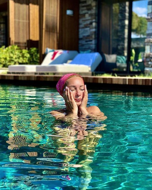 Лера Кудрявцева Не так давно Лера Кудрявцева рассказала о постигшем ее несчастье — один из ее грудных имплантов протек и содержимое попало в окружающие ткани. Потребовалась экстренная операция и удаление обоих имплантов. Лера сама рассказала обо всем в социальных сетях, отметив, что даже не заметила бы «утечки», если бы не «поехала» форма груди. Лера Кудрявцева с дочерью Теперь Кудрявцева предпочитает ходить со своей грудью, не прибегая больше ни к каким пластическим операциям. И демонстрирует ее телеведущая с легкостью и гордостью.На новом снимке в социальных сетях Лера позирует в белом купальнике со звездами, выгодно оттеняющем ее приятный загар. Лиф пляжного ансамбля украшен кокетливыми пуговками, верхняя из которых оказалась соблазнительно расстегнута. Лера Кудрявцева Дополнил образ теледивы яркий платок на голове, повязанный словно тюрбан, и солнцезащитные очки, под которыми были скрыты глаза без привычного яркого макияжа. Рядом со знаменитой мамой уютно устроилась маленькая Маша. Напомним, что сейчас Лера отдыхает с дочерью в турецком городе Белеке, куда улетела сразу после празднования дня рождения ребенка.