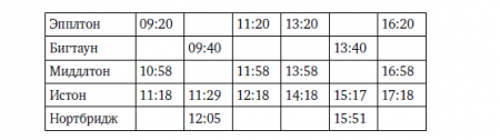 Н. В таблице приведено расписание всех поездов, которые отправляются из Эпплтона и Бигтауна в течение дня.
