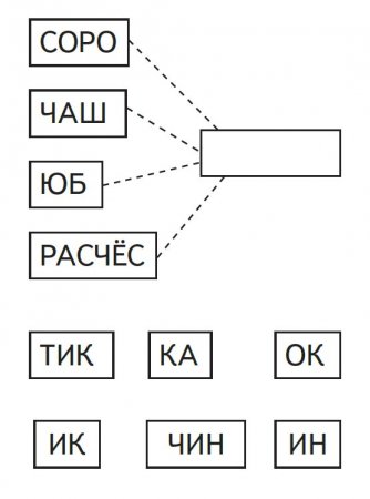 6. Что в конце? Инструкция для ребёнка: выбери слог, который может закончить все эти слова.