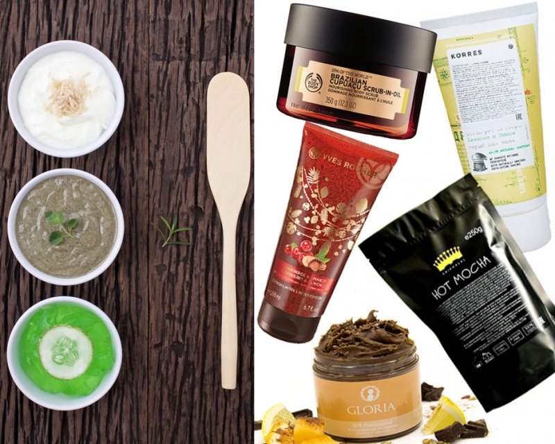 Скрабы для тела: Brazilian Cupuacu Scrub-in-Oil, The Body Shop; Cranberry & Almond, Yves Rocher; «Базилик и лимон», Korres; Hot Mocha, Shik Halal. Антицеллюлитное обертывание «Апельсин в шоколаде», Gloria.Можно сделать скраб самостоятельно: для отшелушивания подойдут сахарный песок, молотая морская соль или кофе. В качестве ухаживающей основы лучше использовать мед, он не только проводит в кожу полезные вещества, но и выводит вредные. Можно добавить питательное масло.