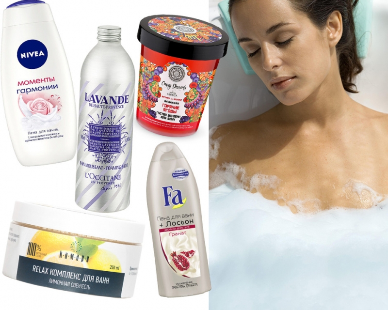 Пена для ванны: «Моменты гармонии», Nivea; Lavande, L'Occitane; «Горячие ягоды», Natura Siberica; «Гранат», Fa. Релакс-комплекс для ванн «Лимонная свежесть», «Камали».На первый взгляд задача у пены одна — радовать взгляд и осязание сбившимися в плотную «шапку» пузырьками. На самом же деле она растворяет загрязнения и очищает кожу, а заодно ухаживает за ней, если в составе есть масла. Кстати, пена для ванны — необязательно жидкая, ее выпускают и в виде желе.