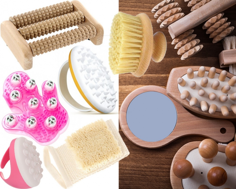 Массажеры: роликовый «Банные штучки»; со встроенными аппликаторами Bradex; Spa Fit, The Body Shop; антицеллюлитный Touchbeauty. Щетка для тела The Body Shop. Мочалка Riffi.Если с мочалками и массажерами все ясно, то у щетки два способа применения.