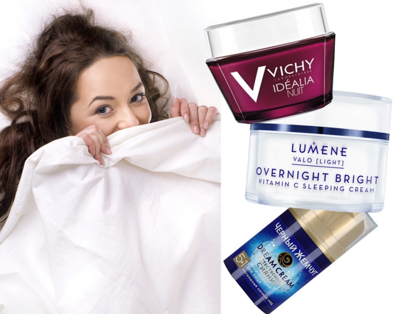Ночные кремы: Idealia Nuit, Vichy; Overnight Bright Vitamin V Sleeping Cream, Lumene; Dream Cream «Естественное сияние 5 в 1», «Черный жемчуг».Увлажнение против первых признаков старения