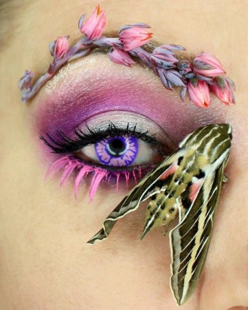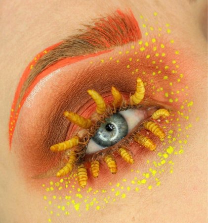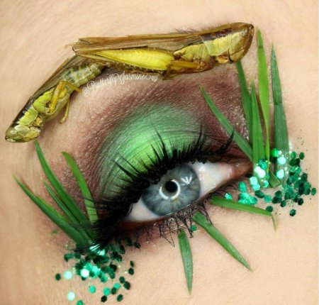 Если вы думаете, что все знаете о женском макияже, то ошибаетесь. Например, американский бьюти-блогер Жасмин Ахумада использует вместе с косметикой разных насекомых. Визажистка живет в Калифорнии и уже опубликовала на своей страничке в Instagram более 30-ти фотографий и роликов необычного макияжа. По словам художника, над этим проектом она работает уже 6 месяцев. Размещая очередной «шедевр», Жасмин кратко пишет интересные факты об использованных ею насекомых - пауках, червяках, гусеницах, пчелах и даже скорпионах. Например, девушка рассказала подписчикам, что современные кузнечики происходят от древних предков, которые жили задолго до динозавров. А треск цикад может быть слышен человеческим ухом почти за 2 километра. www.instagram.com/butterflyjasmine49/?utm_source=ig_embed