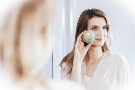 Гаджет от Foreo нагревается и охлаждается, а еще помогает тканевым маскам (они тоже входят в набор) лучше впитываться в кожу. Предмет напоминает сверкающую тарелку жителя с другой планеты, хотя управлять им можно с помощью вполне земного средства — телефона.