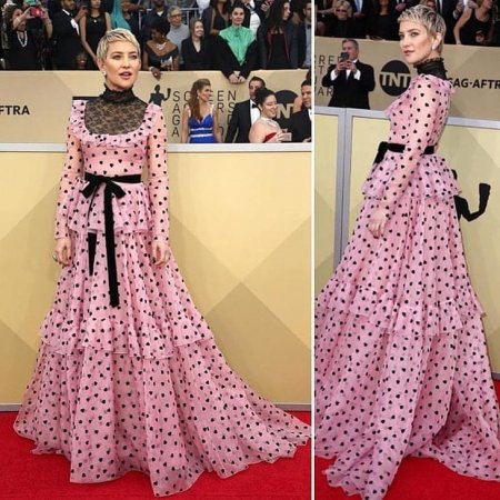 Популярная американская актриса Кейт Хадсон появилась на светском мероприятии в оригинальном платье, которое совершенно не понравилось ее поклонникам в социальных сетях, вызвав жаркие споры о наличии чувства стиля у заокеанской красавицы. Фото instagram.com В Лос-Анджелесе на днях состоялась церемония вручения премии Гильдии актеров Соединенных Штатов Америки. Она также прошла под главным лозунгом минувших месяцев и актрисы вновь выступили в поддержку коллег, подвергшихся сексуальным домогательствам и насилию. Как и на «Золотом глобусе», главным в протесте был цвет одежды, но если ранее он был черным, то теперь розовым. Фото instagram.com Конечно, Кейт Хадсон, появившаяся на ковровой дорожке в сопровождении своей знаменитой матери Голди Хоун, и в этот раз поддержала общий протест, облачившись в нежно-розовое длинное платье с намеком на стиль конца девятнадцатого века. Полностью закрытый наряд знаменитости был украшен рюшами на юбке и по линии декольте, а также принтом в виде сердечек и черной ажурной вставкой на груди. Фото instagram.com По мнению интернет пользователей, Кейт выглядела несколько нелепо в таком виде на фоне своей элегантной матери, появившейся в очаровательном платье нежно-голубого цвета.«Кейт, ну что за платье? Надо брать пример с мамы!»«Тот случай, когда мама выглядит лучше, чем дочка»«Голди просто бесподобна! Кейт кидается из крайности в крайность!»«Это даже не жуткий горох, это сердечки?!»«Куда подевался вкус Кейт?! Что-то её наряды в последнее время разочаровывают! Одевалась безупречно. Куда что делось?!»«Прическа у Кейт стильная и идёт ей. Но вот платье где она только такие находит?» Фото instagram.com Напомним, что совсем недавно Кейт Хадсон поклонники упрекали в чрезмерно откровенном наряде, который она выбрала для посещения церемонии вручения премии «Золотой глобус». Лысая Кейт Хадсон пришла на премьеру в мятом платье В Нью-Йорке, США, в рамках Urbanworld Film Festival прошел премьерный показ картины