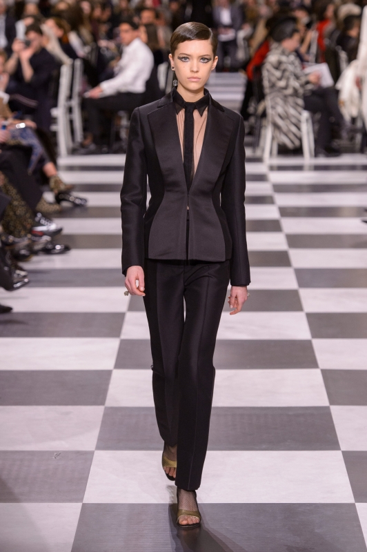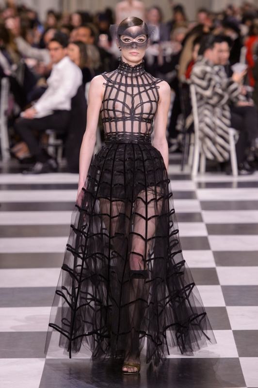 Мария Грация Кьюри посвятила коллекцию Леоноре Фини — художнице-авангардистке, чьи работы ценил Кристиан Диор. Но создавая коллекцию, вдохновляясь затейливыми масками и головными уборами из прошлого, у Кьюри получилось идти в ногу со временем: черные костюмы и платья с одним только каркасом — актуальные варианты в свете движения Time’s Up, охватившего Голливуд.