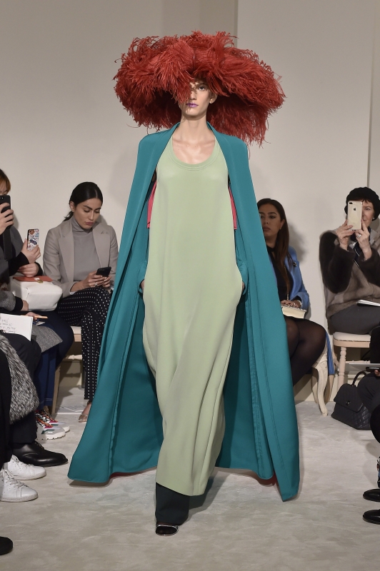 Мы уже видели перья на платьях и строгих костюмах. Пернатыми сапогами и сумками нас тоже не удивить. Но Пьерпаоло Пиччоли показал действительно оригинальную вещь — гигантские парики из перьев, напоминающие не то облака, не то медуз.