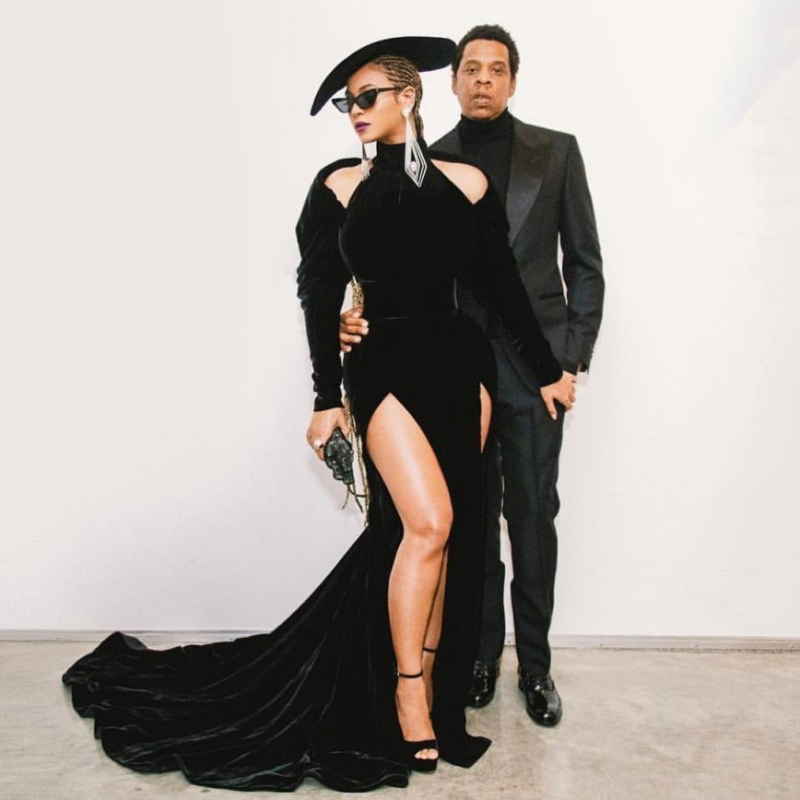 Бейонсе надела на церемонию черное бархатное платье с большими разрезами от ливанского дизайнера Nicolas Jebran, большую шляпу, массивные бриллиантовые серьги от Lorraine Schwartz и, зачем-то, солнечные очки.Не так давно родившая певица выглядит неплохо и эффектно, несмотря на лишний вес, с которым она, похоже, перестала бороться. Огромные разрезы на платье оголяли ее массивные бедра, а, когда звезда села, это стало выглядеть даже неприлично.