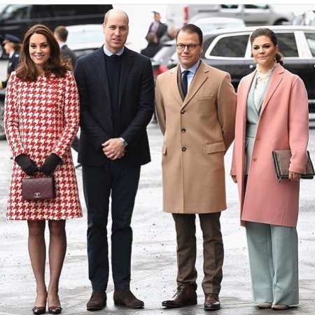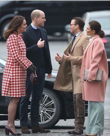 Когда Кейт и Уильям встретились с крон-принцессой Викторией и принцем Даниэлем, все обратили внимание не только на теплую дружескую встречу, но и на розовое пальто Виктории. Хотя очевидно, что дамы выбрали разные наряды, в сети посчитали, что ситуация комичная.