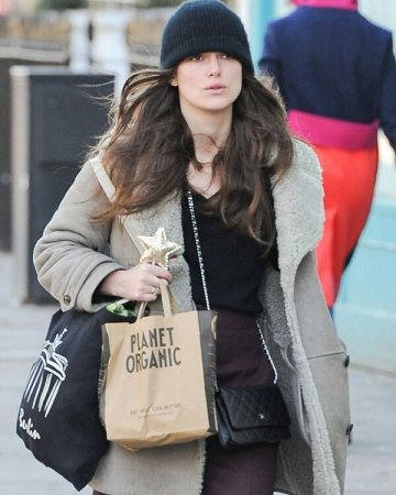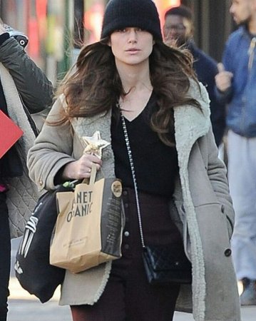 Папарацци встретили 32-летнюю англичанку Киру Найтли в Лондоне во время шопинга. Актриса шла по улице, погруженная в свои мысли, с низко надвинутой на глаза вязанной шапкой, из-под которой развевались распущенные локоны длинных волос.