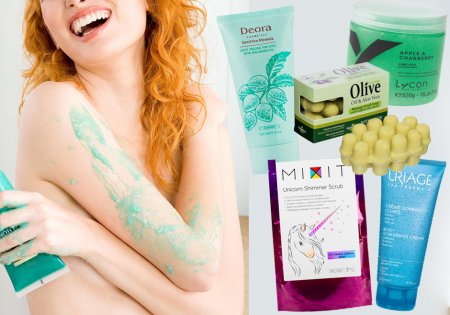солевой пилинг для тела с маслом макадамии, DeoraСияющий антицеллюлитный сухой скраб Shimmer Scrub, MIXITСкраб Body Scrubbing Cream, Uriage Сахарный скраб, Lyson Мыло Massage Scrub Soap, Herbolive