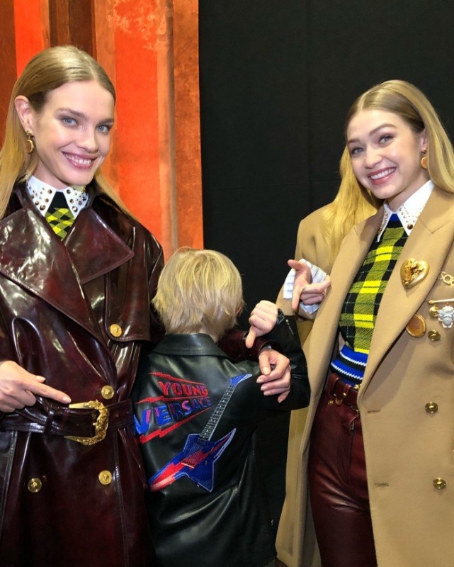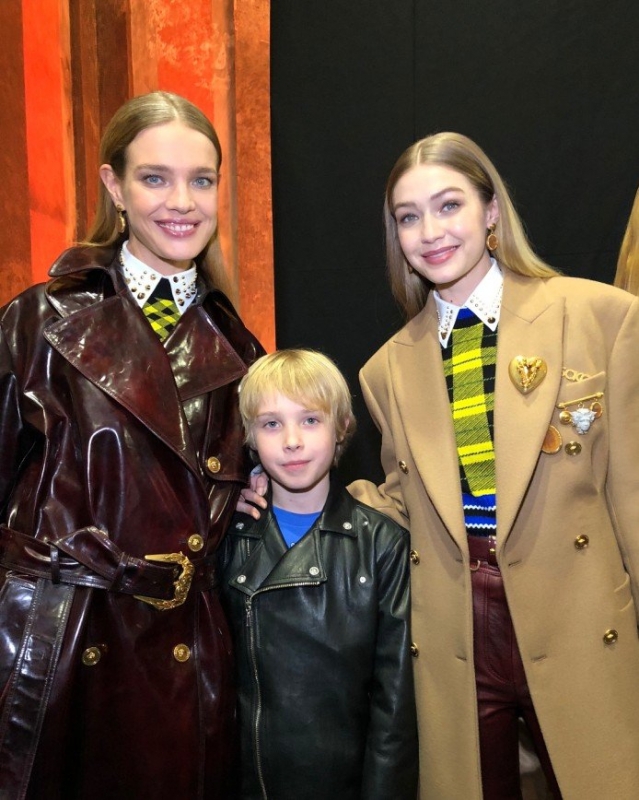 35-летняя Наталья Водянова приехала на Неделю моды в Милан со своим 10-летним сыном Виктором. Российская модель, которая последнее время нечасто выходит на подиум, почетно открыла показ новой коллекции популярнейшего итальянского бренда Versace. красивая коллекция! Браво, Донателла! Браво, Наташа! Вы - восхитительны!»«Очень люблю такие сочетания цветов! Жизнерадостно»«Наталья, вы - гордость России! Мы вас любим»«Наша Наташа впереди всех!» Сын известной российской модели не только смог посмотреть красочное фэшн-шоу, но и познакомиться со знаменитой моделью Джиджи Хадид. На Викторе была надета кожаная куртка, на спине которой красовалась надпись «Young Versace». Поклонники Натальи в микроблоге заметили, какими простыми получились на фотографии мировые звезды, а также их красоту и изящество:«Девушки до безумия очаровательные»«Как доволен парень! С Gigi сфоткался»«Действительно красивая фотка. Без лишних понтов»«Как подрос Виктор! Красавчик!». Напомним, что у Натальи Водяновой есть пятеро детей. От брака с британским аристократом Джастином Портманом она воспитывает 16-летнего Лукаса, десятилетнего Виктора и 11-летнюю Неву. А от гражданского мужа, французского миллиардера, сына владельца концерна LVMH Антуана Арно, Наталья растит 3-летнего Максима и годовалого Романа. А недавно Наталью Водянову раскритиковали ее подписчики за призыв к женщинам открыто говорить о критических днях. Многие посчитали, что такую тему совсем не стоит подымать в интернете. Платье Натальи Водяновой цвета