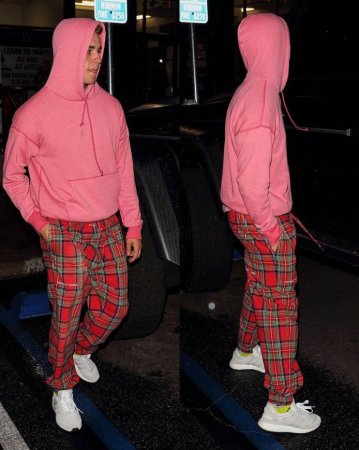 Так и недавняя творческая задумка Бибера не нашла отклика у многочисленных поклонников. Джастин прошелся по улицам города в розовом худи, созданном специально для настоящих ценителей гламура. Дополнили образ красные клетчатые брюки и белые кроссовки. И хотя публика сети и признает, что стремление артиста всегда выглядеть стильно и быть на высоте заслуживает уважения, по их мнению, комплект получился совершенно провальным