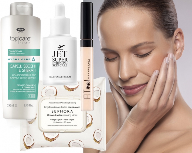 Быстродействующий питательный кондиционер Top Care Repair Hydra Care Conditioner, LisapМультифункциональная сыворотка Jet All In One Jet Serum, Double DareКонсилер для лица Fit Me!, Maybelline NYСалфетки для снятия макияжа, Sephora