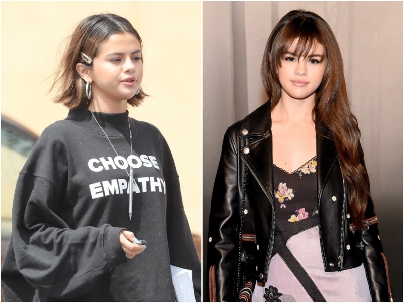 Селена Гомес до (справа) и после (слева) расставания с Джастином БиберомПока мир гадает, сойдутся ли вновь Селена Гомес и Джастин Бибер, решившие взять перерыв в отношениях, певица переживает разрыв старым добрым способом — сменой имиджа. Теперь она снова стала обладательницей боба, распрощавшись с длиной. Зато теперь понятно, что длинные локоны, скорее всего, были париком (в звездном мире такой «аксессуар» пользуется невероятной популярностью) — в начале этого года знаменитость выходила в свет с короткими светлыми локонами, не могла же она так быстро отрастить волосы.