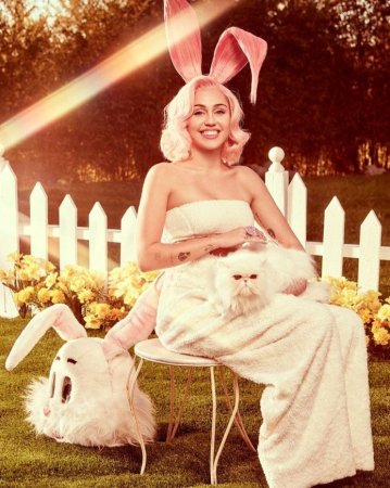Судя по всему, 25-летняя Майли Сайрус очень своеобразно подготовилась к предстоящей Пасхе. Эпатажная певица снялась в забавной и красочной фотосессии для известного журнала Vogue. Огромная армия подписчиков Майли Сайрус в Инстаграме – почти 75 миллионов человек – осталась в полнейшем восторге, увидев новые фотографии популярной певицы. Для снимков она покрасила волосы в розовый цвет, но сделала скромный макияж. А заячьи уши, огромные игрушки, морковки и цветные яйца дополнили праздничный антураж. Некоторые из поклонников решили, что в таком образе Майли стала похожа на куклу Барби. В журнале Vogue отметили, что для этой фотосессии Майли сама выдумывала костюмы и сценки. А себе в помощь певица пригласила двух своих близких друзей - дизайнера Брэдли МакПик, а также фотографа Вижата Мохиндру. Кстати, он уже ранее снимал саму певицу, ее возлюбленного Лиама Хемсворта, а также Рианну, Пэрис Хилтон и Селену Гомес. Фолловеры осыпали Майли Сайрус комплиментами в ее микроблоге:«Это самый лучший зайчик, которого я видел в жизни»«Прекрасные и солнечные образы. С наступающей Пасхой!»«На твою улыбку хочется смотреть бесконечно»«Ты стала похожа на Барби в этом образе»«Впечатлен. Очень красива!»«Великолепна! Какая задорная улыбка!». Майли Сайрус – невероятно популярная и талантливая девушка. В 2013 году, по данным журнала «Maxim», она заняла первое место в рейтинге «100 самых сексуальных женщин планеты». Майли успешна в кино и на сцене. Также девушка удачлива и в личной жизни. В 2009-го она стала встречаться с австралийским актером Лиамом Хемсвортом. Через три года красавчик попросил руки певицы, подарил роскошное кольцо. Однако спустя год влюбленные расстались. После Майли приписывали роман с Патриком Шварценеггером и даже с моделью Стеллой Максвелл. И вот, в начале 2016 года, певица вновь сошлась с бывшим возлюбленным Лиамом Хемсвортом. Периодически в СМИ пишут о тайном бракосочетании звездной четы, но официального подтверждения этому пока нет. А недавно Майла Сайрус оказалась втянута в очередной скандал. Ее обвинили в плагиате и потребовали за это 300 миллионов долларов.