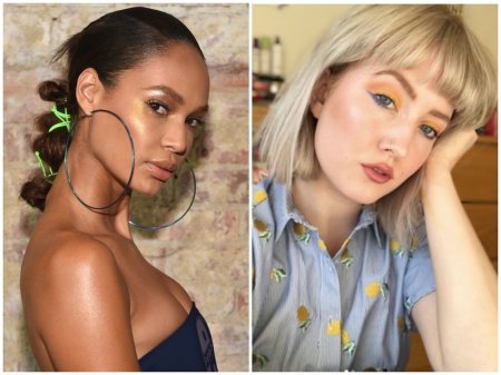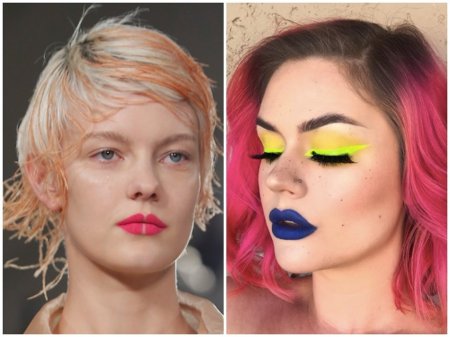Макияж с показа Maison Margiela весна 2018 (слева) и макияж блогера @emmahallidaymua (справа)Тот редкий случай, когда фантазия визажистов с показов ни в чем не уступает блогерам: вприкуску к неоновому макияжу идут цветные пряди, губы необычных оттенков и стрелки, которые издалека смотрятся как светоотражающие жилеты (девушки явно умеют заранее заявить о своем появлении). В общем, тренд для огненных красоток!