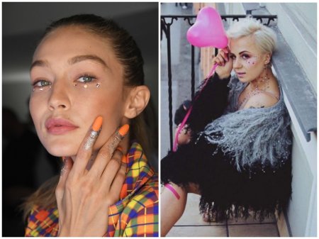В случае с блогерами негласный разговор ведется о фантазии и смелости. Да, и на модных показах глаза девушек бесстрашно «обводили» переливающимися камешками, но блогеры пошли дальше и стали украшать все тело. Очень уж нам это напоминает страдание по глиттеру — помнишь, как еще в конце прошлого года девушки посыпали себя с ног до головы блестящим пигментом? Кажется, то же самое теперь творится и с кристаллами.