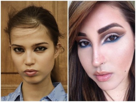 Макияж с показа Paul & Joe весна 2018 (слева) и макияж блогера @cristal_garamendi (справа)Современная Клеопатра — это не фрик с Хэллоуина, а самая обычная девушка в современной одежде, но с эффектными стрелками — их линия заходит за контур глаза и тянется к виску.