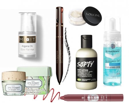 Восстанавливающая эссенция с маслом арганы, MIXITШиммер Reflection Dust, LorigineРучка-подводка для глаз и губ Stylo 4 Couleurs, ClarinsСияющий крем для глаз It's Potent, BenefitЛосьон для ног «Неженка», Lush Пенка-мусс 2в1, «Черный жемчуг»Стик для губ Butter Stick, Essence